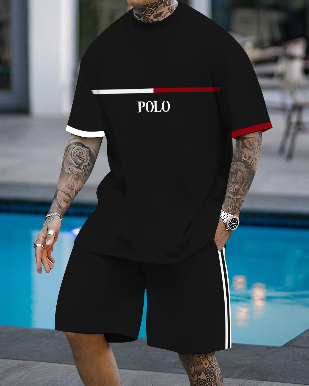 Men's fashion casual color matching printed short-sleeved two-piece set