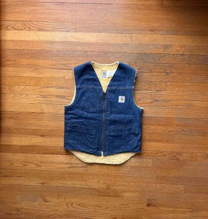 80’s Faded Denim Sherpa Lined Vest - Small
